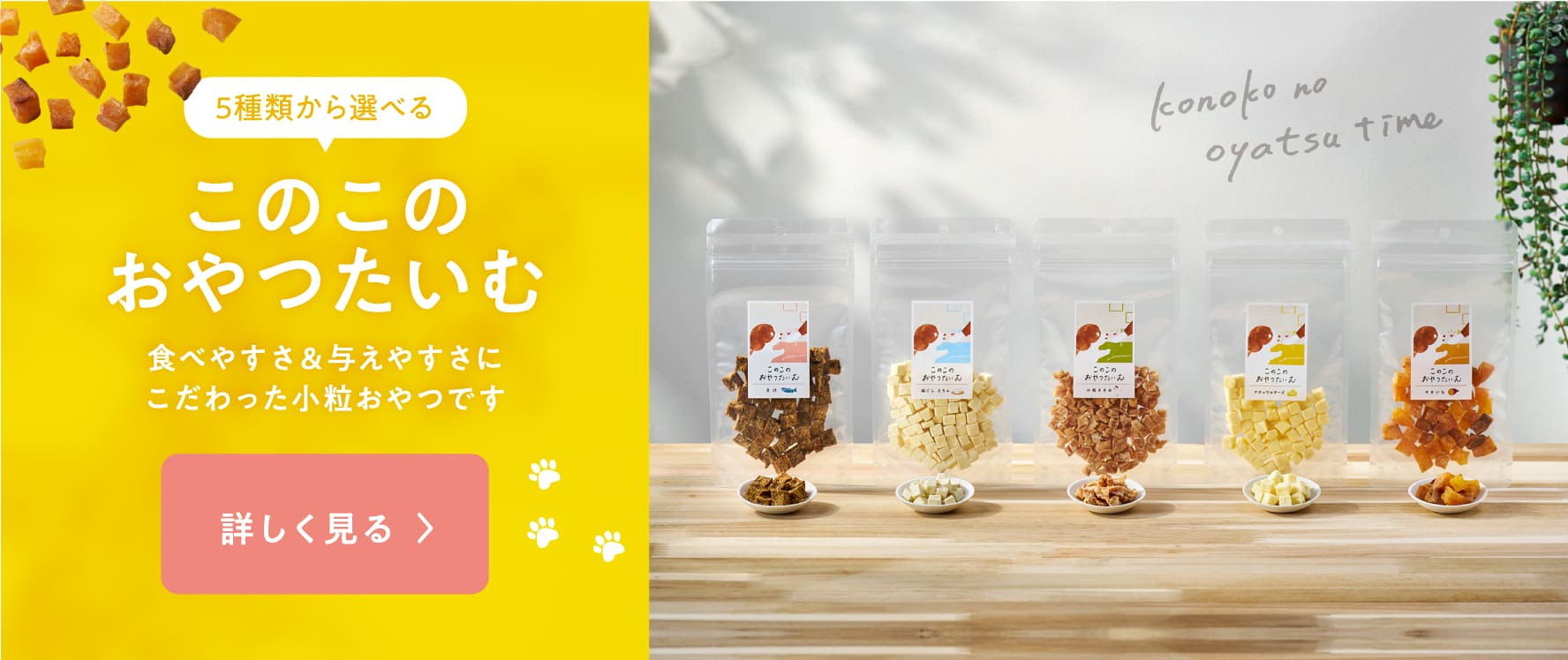 コノコトトモニでは、国産・無添加*で人も食べることができるお肉やお魚を使用しているヒューマングレードなドッグフード『このこのごはん』や、おやつ『このこのおやつたいむ』を販売しています。