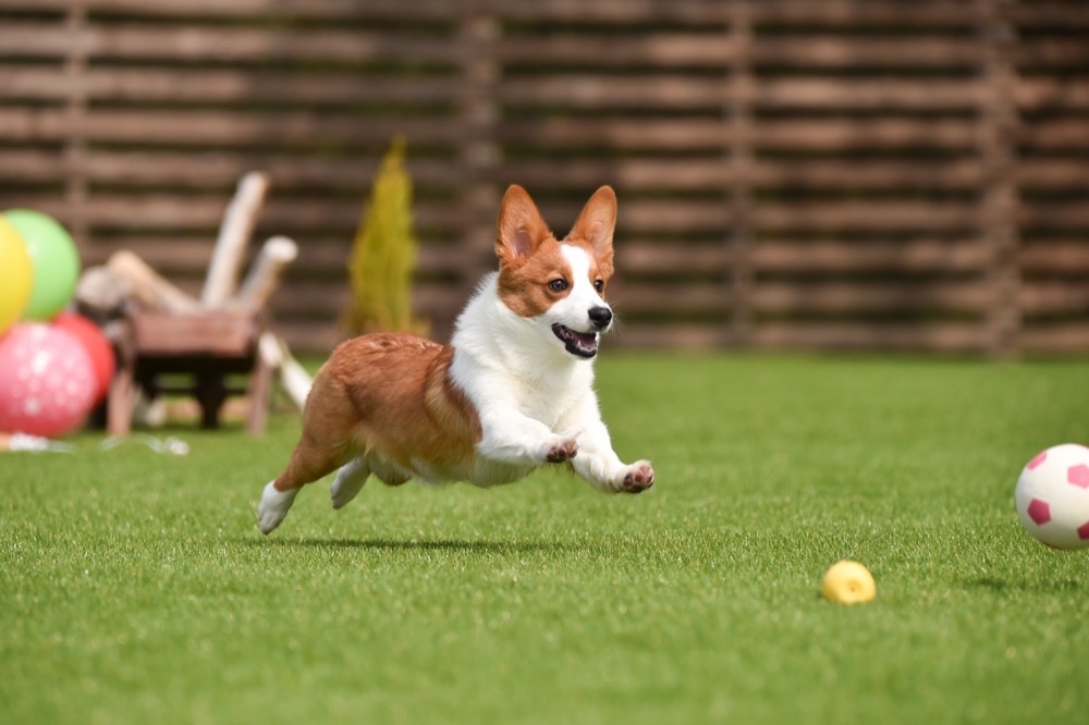 人工芝が敷かれているため、愛犬の足への負担が少なく、広いエリアを思いっきり走り回ることができます。