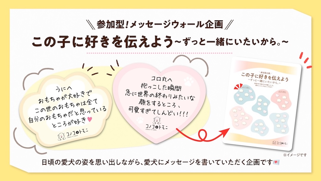 日頃の愛犬の姿を思い出しながら愛犬にメッセージを書いていただく企画です。