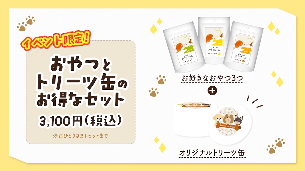 お好きなおやつ3つ+オリジナルトリーツ缶1個